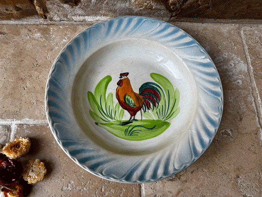 Antique French Large Serving Bowl with Hand Painted Chicken