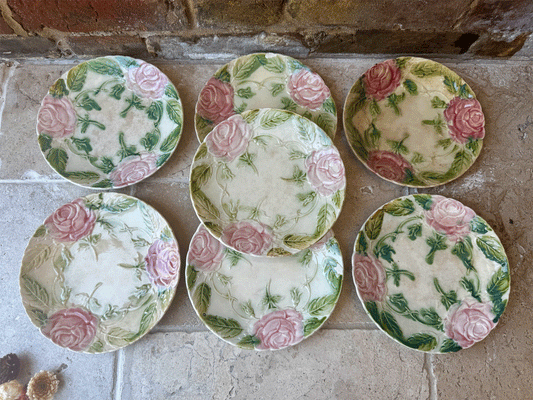 Antique French Plate with Teal Transferware Narcisses Pattern