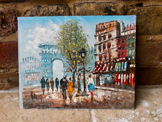 Pretty Vintage Parisian Scene Impressionist Oil Painting - Arc de Triomphe