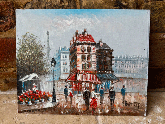 Pretty Vintage Parisian Scene Impressionist Oil Painting - Tour Eiffel