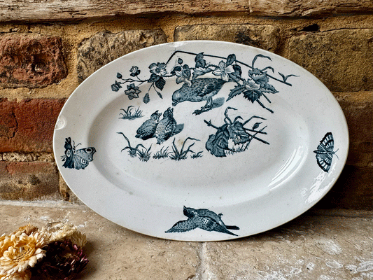 Beautiful French Teal Platter - Birds