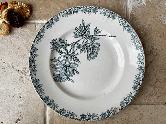 Antique French White Ironstone Drainer Plate with Star Pattern