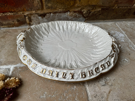Victorian Antique Ironstone Bread Platter - Give Us This Day Our Daily Bread