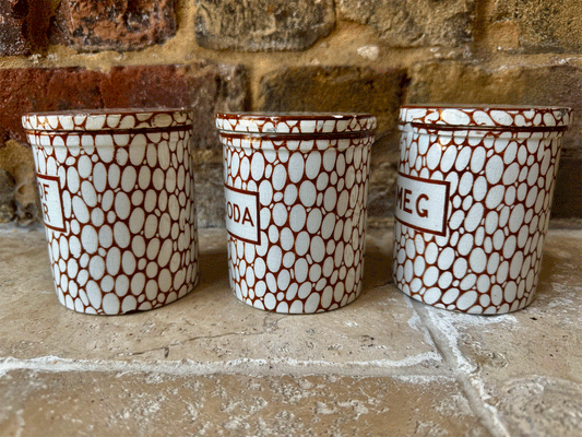 Rare Small 1930s Maling Cobblestone Ironstone Storage Jar - Nutmeg, Cream of Tartar & Carbonate of Soda