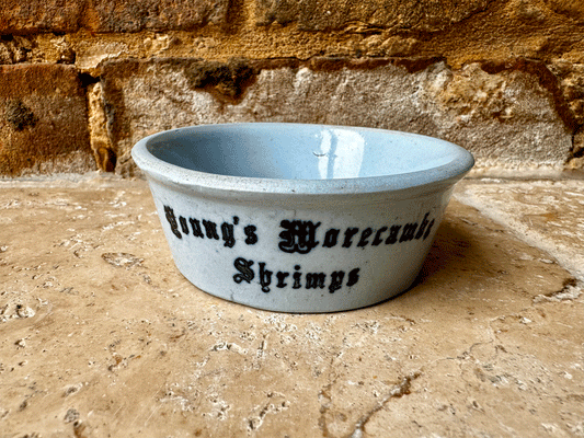 Scarce Antique Victorian Blue English Advertising Pot - Young's Morecambe Shrimps