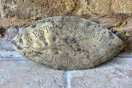 Victorian Brass Dairy Plaque - West London Dairy, Euston
