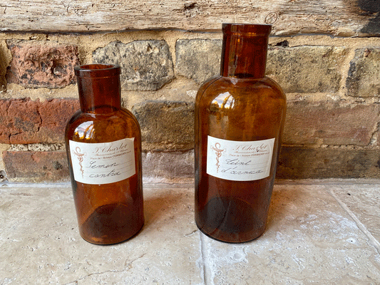 Vintage French Amber Glass Apothcary Bottle