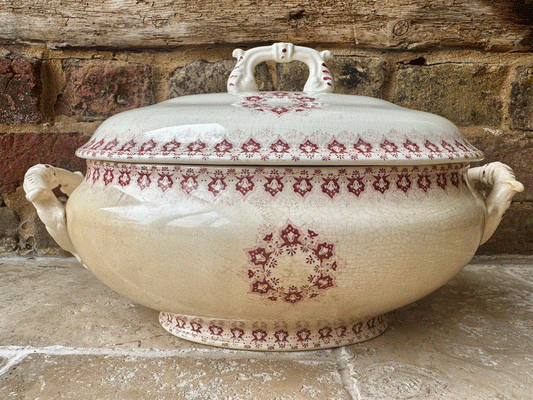 Large Antique French Terre de Fer Pink Lidded Soupiere