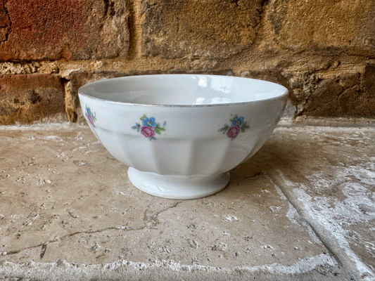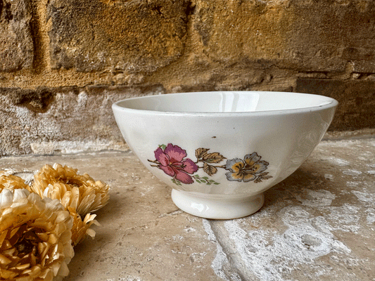 French Ironstone Cafe au Lait Bowl with Floral Pattern
