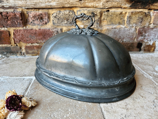 Stunning Large Antique Victorian Oval Pewter Cloche