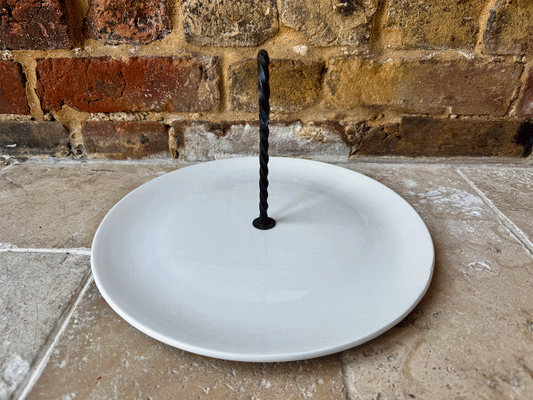 Vintage French Ironstone Cake Plate with Cast Iron Handle