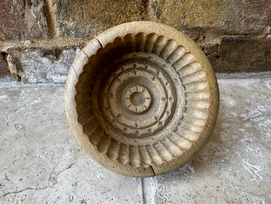 Antique Victorian Carved Wooden Flummery Mould with Geometric Pattern