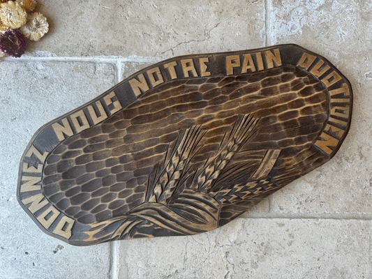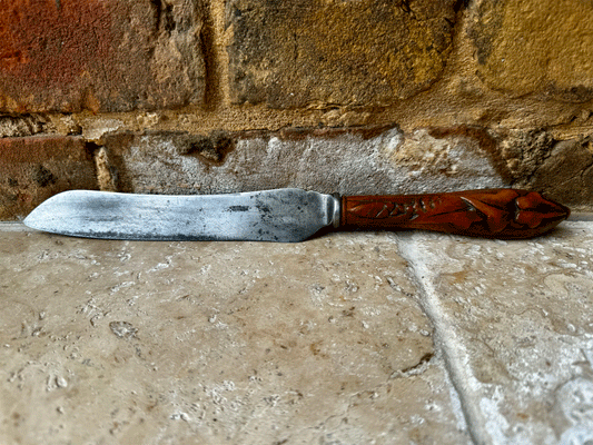 Antique Edwardian Carved Wooden Bread Knife - Ivy Leaves, Wheat and Barley