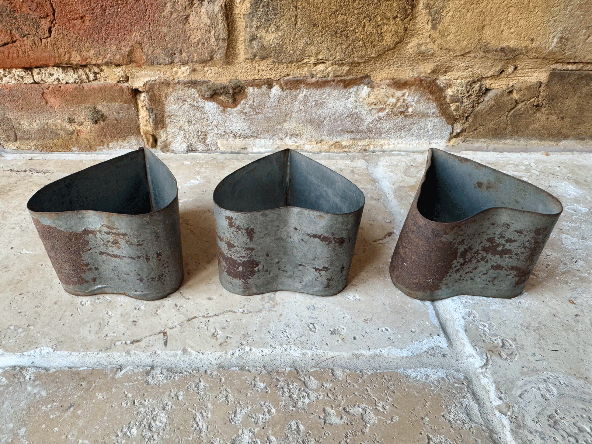 Although there is some wear and oxidisation to the moulds, they make excellent pieces of vintage French decor to have around the home, either sitting on their own as part of a shelf display or with a tealight in them.