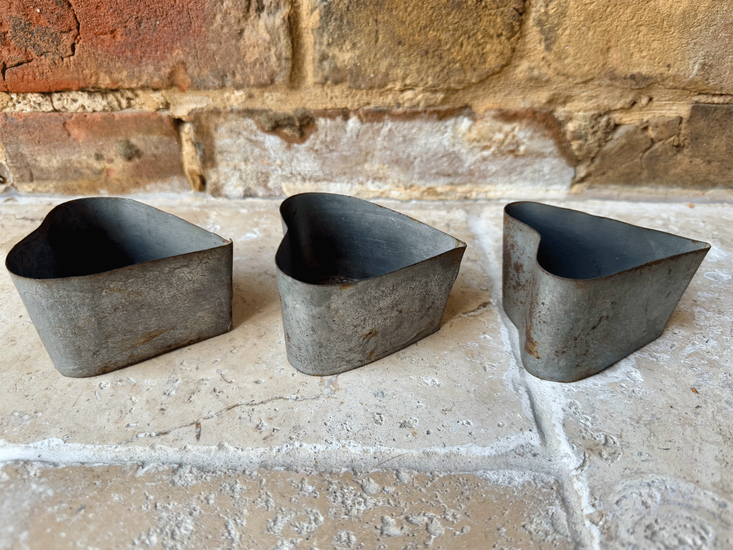 Dating from the early to mid 20th Century, these are wonderful small tin cookery moulds designed to produce cakes in the shape of a heart.